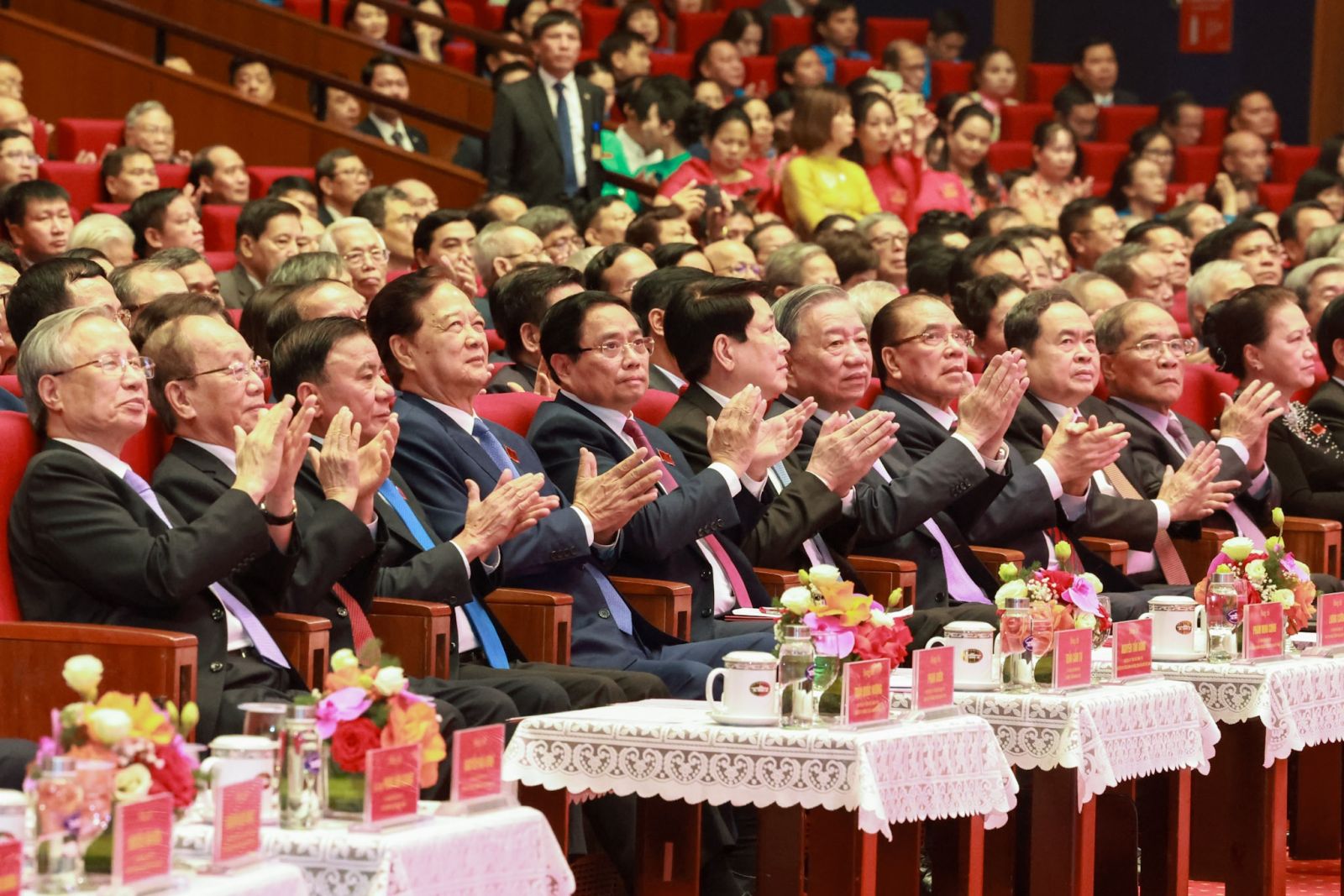 Cùng tham dự lễ kỷ niệm có: nguyên Tổng Bí thư Nông Đức Mạnh; Chủ tịch nước Lương Cường; Thủ tướng Chính phủ Phạm Minh Chính; nguyên Thủ tướng Chính phủ Nguyễn Tấn Dũng; Chủ tịch Quốc hội Trần Thanh Mẫn; nguyên Chủ tịch Quốc hội Nguyễn Sinh Hùng; nguyên Chủ tịch Quốc hội Nguyễn Thị Kim Ngân; Ủy viên Bộ Chính trị, Thường trực Ban Bí thư Trần Cẩm Tú; nguyên Ủy viên Bộ Chính trị, nguyên Thường trực Ban Bí thư: Phan Diễn, Lê Hồng Anh, Trần Quốc Vượng.
